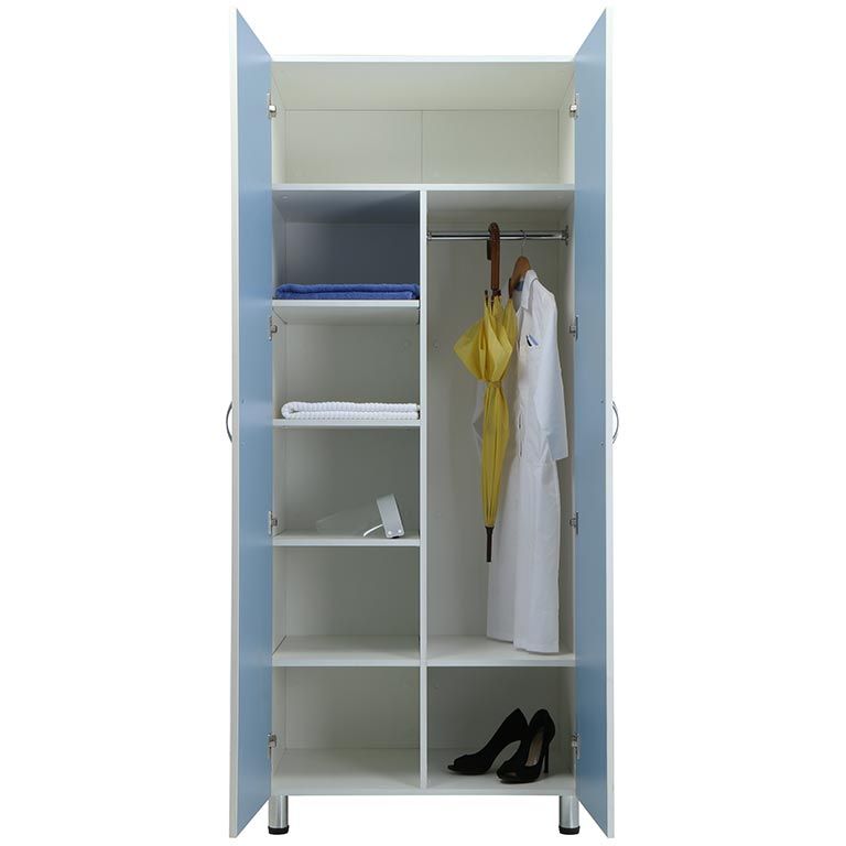 Шкаф для палат MF LH-2 1980 в голубом цвете - практичное и стильное решение для больниц, родильных домов и лечебных стационаров. Предназначен для хранения рабочей и личной одежды, а также других вещей. Каркас шкафа выполнен из долговечного ЛДСП, а задняя стенка состоит из двух частей для дополнительной проходимости воздуха. Фасады шкафа из ЛДСП обеспечивают долгий срок службы. Двери с углом открывания 110 градусов обеспечивают плавный и бесшумный ход, а металлические ручки упрощают открывание. Внутреннее пространство разделено на полки.
