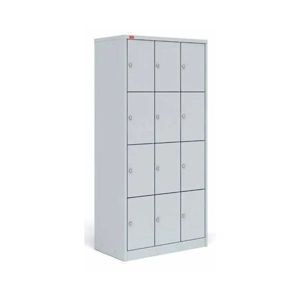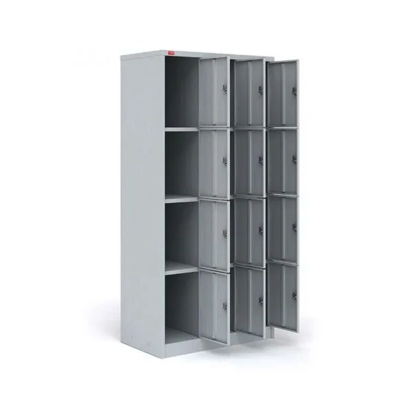 Двенадцать индивидуальных ячеек с надёжными замками — идеальное решение для организации пространства в торговых центрах и спортивных клубах.