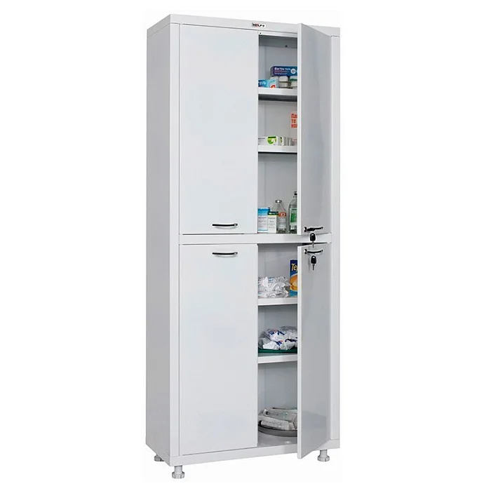 Для безопасного хранения инструментов, препаратов, карточек пациентов и любой другой документации удобным будет шкаф HILFE МД 2 1670/SS с двустворчатыми дверцами, которые закрываются на ключевой замок. Он изготовлен из прочной стали, покрытой порошковой краской, образующей полимерное покрытие. Две секции шкафа разделены полочками, которые выдерживают по 30 кг, поэтому на них можно будет хранить даже тяжелые инструменты. Цена мебели оправдана ее высоким качеством, надежностью, безопасностью. Доставка из нашего магазина выполняется в максимально короткие сроки. По Москве доставляется оборудование очень быстро. Наш магазин предлагает удобные условия сотрудничества для всех медицинских организаций и учреждений. Купить оборудование можно прямо сейчас!