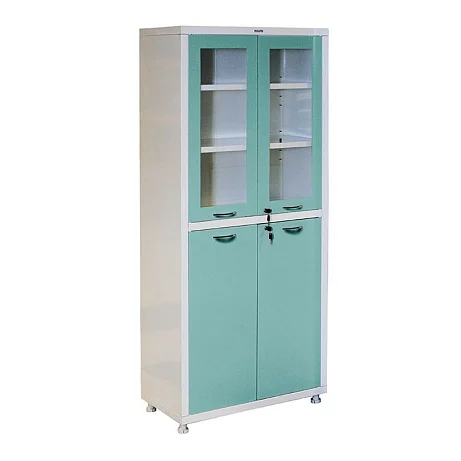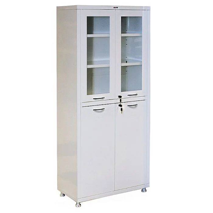 Удобный и вместительный шкаф HILFE МД 2 1780 R может быть установлен в медучреждениях, так как по своим характеристикам этот предмет мебели полностью соответствует всем нормам и требованиям, которые выдвигаются к такому оборудованию. В верхней части можно хранить те документы, медицинские инструменты или препараты, которые могут оставаться на виду — в стальной дверце предусмотрена стеклянная вставка. Закрываются обе двустворчатые дверцы на ключевой замок. Нижняя полностью сделана из стали, как и вся конструкция. Цена оборудования в нашем магазине самая доступная, поэтому оснащать рабочее место в медицинском учреждении такими шкафами — это практично и рационально. К тому же выгодные условия доставки (особенно по Москве), упрощают процесс. Покупайте шкаф у нас, сделать это можно прямо сейчас!