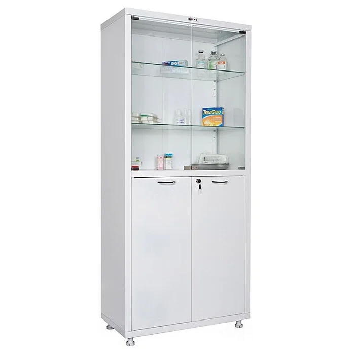 Для рационального использования пространства и хранения различных вещей медицинского назначения можно установить шкаф HILFE МД 2 1780/SG. Верхняя его часть, которая закрывается стеклянной дверью, защелкивающейся на магнитные фиксаторы, может использоваться как своеобразная витрина для выставки информационных брошюр, препаратов и т. д. В нижней части, которая закрывается на ключ, можно хранить инструменты, даже тяжелые, так как каждая полка выдерживает до 30 кг. При такой вместительности и выносливости конструкции, цена на нее невысокая. В самые короткие сроки доставка будет осуществлена заказчикам из Москвы. Обращайтесь в наш магазин прямо сейчас!