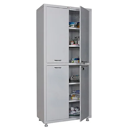 Для хранения большого объема инструментов, документов или справочной литературы, медицинских препаратов хорошо подходит шкаф HILFE МД 2 1780/SS. Надежная конструкция выполнена полностью из стали, покрытой безопасной полимерной краской. На двух двустворчатых дверях — на нижней и верхней секции. Обустроить рабочее место в медицинском учреждении или организации этим удобным предметом мебели можно недорого, так как цена на него в нашем магазине. Доставка при заказе из нашего магазина производится по Москве в самые короткие сроки. Привозится вместе с нормативными документами, предоставляемые производителем, который обладает лицензией на изготовление медтехники. Обращайтесь для консультации и заказа шкафа HILFE МД 2 1780/SS прямо сейчас!