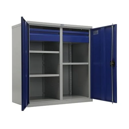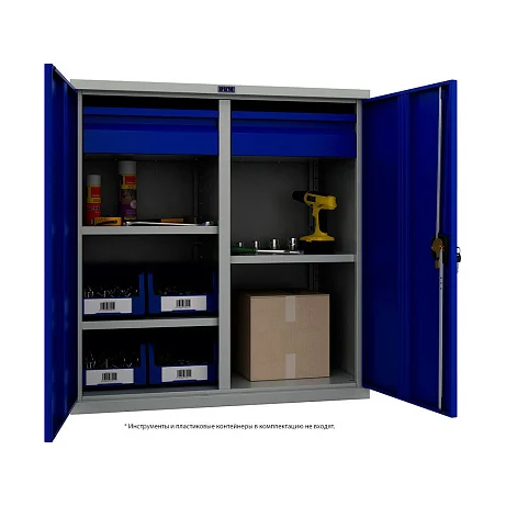 Шкаф инструментальный ТС 1095-100302 разделен перегородкой на две вертикальные секции, комплектуется тремя съемными и регулируемыми по высоте полками и двумя выдвижными ящиками, оснащенными телескопическими направляющими. Конструкция шкафа предусматривает возможность самопроизвольной установки пользователем полок и ящиков. Изделие оборудовано распашной дверью, на которой установлен ключевой замок Burg GSC813 с ручкой. Выгоднее всего покупать шкаф инструментальный ТС 1095-100302 в интернет-магазине МедМебель, который предлагает самые низкие цены на весь ассортимент товаров. Форма заказа заполняется непосредственно на сайте. Адресной доставкой товаров по Москве занимается курьер.