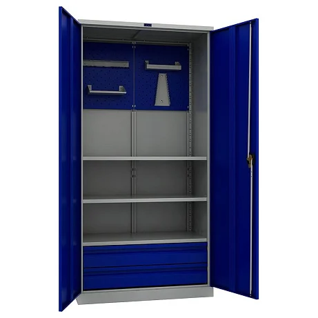 Шкаф инструментальный ТС 1995-023020 устанавливается в мастерских и автосервисах и служит для хранения инструментов и других необходимых материалов. Шкаф комплектуется тремя регулируемыми по высоте съемными полками, двумя выдвижными ящиками и двумя перфорированными экранами, на которые крепятся маленькие полочки и держатели для ключей и инструментов. На шкафу установлены распашные двери с ключевым замком Burg GSC813. Выгоднее всего шкаф инструментальный ТС 1995-023020 покупать в интернет-магазине МедМебель. Заказы обрабатываются очень быстро, а цены на товары приятно удивляют. По Москве доставкой товаров занимается курьер.