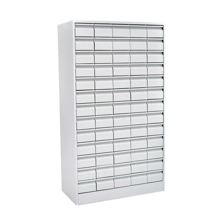Шкаф картотечный для библиотечных карточек (65 ящиков) вмещает большой объем носителей информации. С его помощью организовать систематичное хранение карточек достаточно просто. При этом сам шкаф не займет много места в помещении. В каждый ящик можно поместить большой объем документов — они выдерживают нагрузку до 5 кг. Выдвигаются ящики благодаря системе роликовых направляющих.