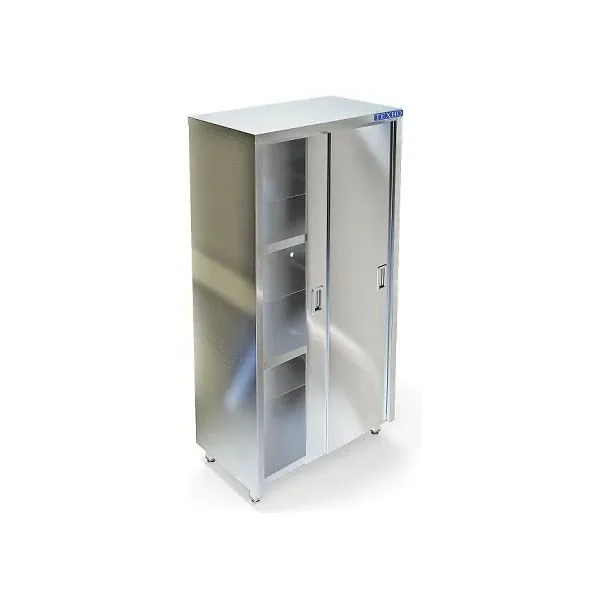 Простой и надежный шкаф для тех, кто не готов идти на компромиссы с беспорядком на кухне. Корпус из нержавеющей стали AISI 304 (0,8 мм) выдержит ежедневную эксплуатацию в цехе, а задняя стенка и три внутренние полки из AISI 430 (0,8 мм) держат форму и легко отмываются. Две раздвижные двери-купе экономят пространство и защищают содержимое от пыли и влаги.