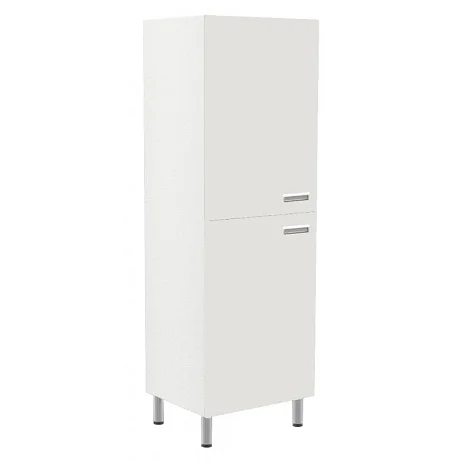 Шкаф имеет устойчивое основание на регулируемых опорах высотой 150 мм, с диапазоном регулирования до 15 мм, что позволяет легко адаптировать его под разные условия эксплуатации. Двери шкафа, открывающиеся на угол 160° и снабженные накладными петлями с доводчиком, гарантируют удобный доступ к содержимому.