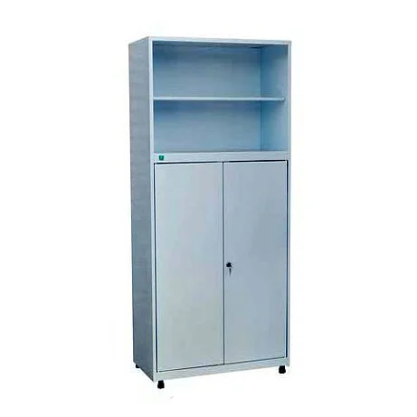 Шкаф материальный ШМ-03 с удобной конструкцией разделен на отделения различной функциональности. Верхняя часть стеллажного типа разделена на две секции полочкой. Здесь лучше всего хранить простые предметы, которые всегда должны быть под рукой. Те же медикаменты и материалы, которым очень важно обеспечить сохранность, лучше поместить в нижнее отделение, закрывающееся двустворчатой дверцей с ключевым замком. Здесь пространство разбито на секции разного объема тремя стационарными полками. Разделить на категории и хранить в порядке все необходимое будет просто и удобно.