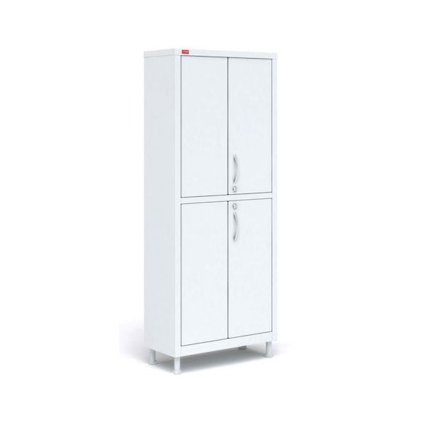 ПАКС металл М2 165.70.32 М – шкаф для хранения медицинского инвентаря. В конструкции предусмотрено два отсека, в каждом из которых установлено по две металлические полки с возможностью регулировки по высоте. Каждый модуль оснащен двойной распашной дверцей с врезным замком. Корпус выполнен из листовой стали толщиной 0.6 мм, на металл нанесено полимерное покрытие, устойчивое к механическому воздействию и дезинфицирующим составам.