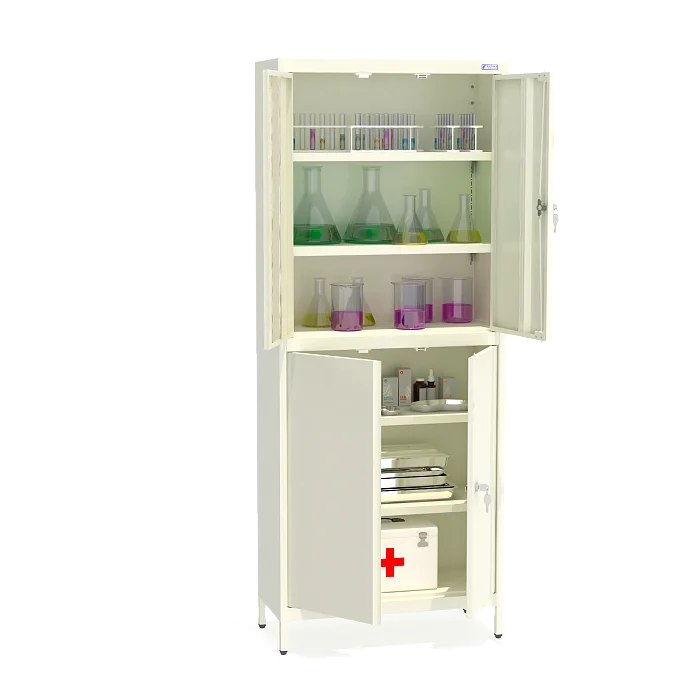Шкаф медицинский металлический MD GS 24-910 F предназначен для хранения лекарственных препаратов, карт пациентов, инструментов и сопутствующего инвентаря. Используется в государственных и частных медицинских учреждениях. Сборный двухсекционный шкаф с распашными дверями, угол открывания 110 градусов. Изделия обладают прочной конструкцией и имеют сертификаты соответствия.