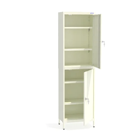Шкаф медицинский металлический MD GS 24-910 предназначен для хранения лекарственных препаратов, карт пациентов, инструментов и сопутствующего инвентаря. Используется в государственных и частных медицинских учреждениях. Сборный двухсекционный шкаф с распашными дверями, угол открывания 110 градусов. Изделия обладают прочной конструкцией и имеют сертификаты соответствия.