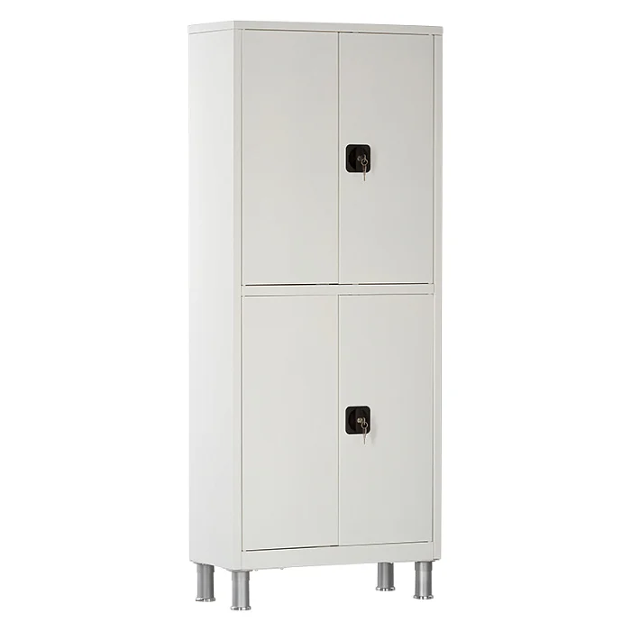 ШМ-04 МСК-648.01-11 представляет собой медицинский шкаф с двумя отсеками. В каждом из них предусмотрено по 2 металлические полки. Каждый модуль закрывается распашными дверцами с ригельным замком с поворотной рукояткой. Корпус шкафа выполнен из стали толщиной 0.8 мм, на которую нанесено полимерно-порошковое покрытие. Фасады оснащены П-образной усиливающей конструкцией. Шкаф подходит для оснащения смотровых, перевязочных кабинетов, постов медсестер, реанимационных палат. Модель отлично подходит для оснащения лечебно-профилактических учреждений.