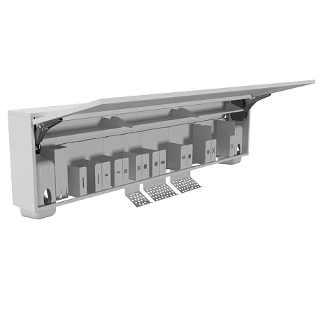 Оснащен десятью съемными модулями, которые можно заменить, убрать или переставить по вашему усмотрению. Содержимое каждого модуля можно извлечь без открывания дверцы.