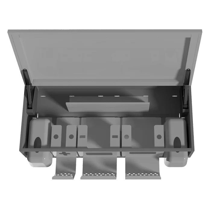 В комплект входят разнообразные аксессуары: два короба для перчаток (220 мм и 130 мм), короб для масок, а также диспенсеры для мыла и антисептика, дополненные полкой 450 мм. Этот шкаф станет незаменимым помощником для медицинских работников, обеспечивая максимальную функциональность и комфорт.