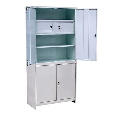 Вместительная модель медицинской мебели — шкаф медицинский двухстворчатый ШММ-2-Т — обеспечивает безопасное хранение сильнодействующих медикаментов и других предметов на рабочем месте сотрудника медучреждения. Для этого его конструкцией предусмотрены трейзеры в верхнем отделении. Каждый из них запирается на замок повышенной секретности. Дополнительно вещи хранить можно будет в трех секциях, на которые разделено остальное пространство верхнего отделения. Нижнее отделение разбито на две части одной полочкой. Двухстворчатые металлические дверцы вверху и внизу тоже оснащены ключевыми замками.