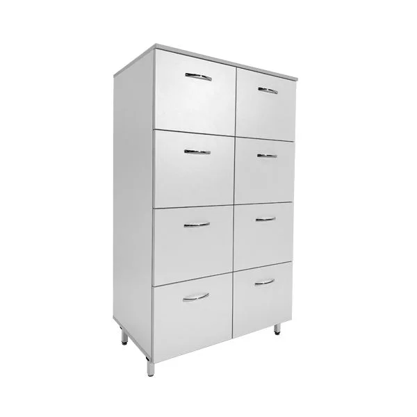 Шкаф медицинский СТР МД 102.03 предназначен для удобного размещения документации. Каркас из стального профиля 25х25 мм покрыт порошковой краской. Корпус шкафа выполнен из ЛДСП толщиной 16 мм. Восемь выдвижных ящиков размещаются в два вертикальных ряда по 4 штуки в каждом. Регулировка высоты ножек осуществляется с помощью винтовых опор. Ширина шкафа составляет 80 см. Приобрести шкаф медицинский СТР МД 102.03 по цене производителя можно в интернет-магазине «МедМебель». Курьер быстро доставит товар в любую точку Москвы. Для отправки в другие регионы России пользуемся услугами транспортных компаний.