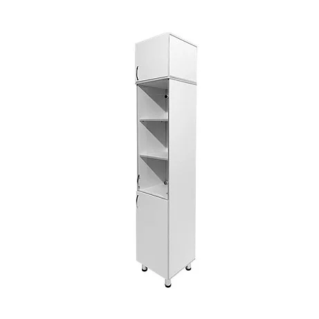 Шкаф представлен в классическом белом цвете, однако предусмотрены различные опции для индивидуального выбора цветового исполнения, что позволяет адаптировать его к различным интерьерам медицинских помещений.