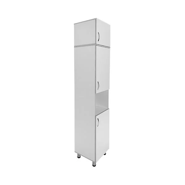 Шкаф оснащен полками, дверцами и регулируемыми по высоте ножками, что обеспечивает удобное размещение медицинской документации и аксессуаров. Разделенная на отделения ниша позволяет систематизировать материалы для легкого доступа и хранения. Шкаф выполнен из качественного ЛДСП толщиной 16 мм, что обеспечивает долговечность и надежность срока службы изделия.