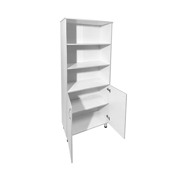 Шкаф оснащен полками, дверцами и регулируемыми по высоте ножками, обеспечивая гибкую кастомизацию и адаптацию к индивидуальным потребностям пользователей. Изготовленный из ЛДСП высокого качества, он гарантирует надежность и долговечность использования. Ниша шкафа разделена на отделения, что облегчает хранение и структурирование медицинской документации.