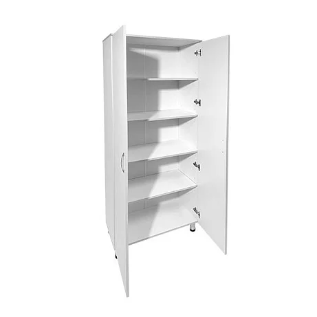 Шкаф оснащен удобными полками, дверцами и регулируемыми по высоте ножками, что делает его универсальным и функциональным оборудованием для хранения медицинских материалов. Изготовленный из прочного ЛДСП толщиной 16 мм, он гарантирует долговечность и надежность в использовании.
