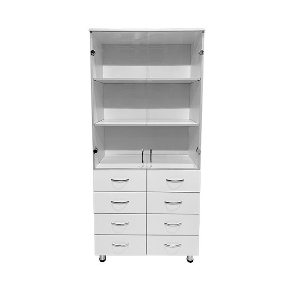 Для систематизации и удобного хранения медицинской документации используется шкаф медицинский СТР МД 103.21. Шкаф выполнен из прочного ЛДСП толщиной 16 мм и способен выдерживать значительные нагрузки. Верхний отдел мебели оснащен двумя полками и закрывается стеклянными дверками. В нижней части шкафа располагаются восемь выдвижных ящиков в два вертикальных ряда. Ножки оснащены опорами-регуляторами. Интернет-магазин «МедМебель» предлагает минимальную цену на шкаф медицинский СТР МД 103.21. Мы являемся производителями, поэтому вам не нужно переплачивать посредникам. По Москве доставка товаров производится курьерской службой. Для отправки в другие регионы России используются транспортные компании.