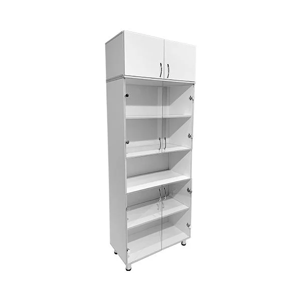 В шкафу медицинском СТР МД 103.24 с антресолью СТР МД 112.02 удобно размещать различную документацию, которая используется в процессе работы в медучреждениях. Шкаф оснащен антресолью с дверками. Внутреннее пространство шкафа разделено на верхний и нижний отдел, каждый из которых оснащен полкой и двумя стеклянными дверками. Между отделами имеется открытая ниша. Шкаф изготовлен из ЛДСП толщиной 16 мм. На ножках установлены опоры с возможностью регулировки по высоте. Приобрести по самой выгодной цене шкаф медицинский СТР МД 103.24 с антресолью СТР МД 112.02 вы можете в интернет-магазине «МедМебель». В пределах всей Москвы товары доставляются курьером. По России отправляем с помощью транспортных компаний.