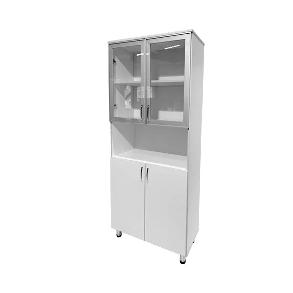 Шкаф медицинский СТР МД 103.33 изготавливается из листов ЛДСП толщиной 16 мм и устанавливается в медучреждениях для хранения различной документации. Шкаф разделен на верхний и нижний отдел, между которыми расположена ниша. Верхнее отделение закрывается двумя стеклянными прозрачными дверками в алюминиевом профиле и имеет одну полку. Нижнее отделение также имеет одну полку, но закрывается двумя дверками из ЛДСП. Высота ножек может варьироваться благодаря специальным опорам. Интернет-магазин завода-производителя «МедМебель» предлагает шкаф медицинский СТР МД 103.33 по самой минимально возможной цене. Сделайте заказ прямо сейчас на сайте — и курьер быстро доставит товар вам под дверь по любому адресу в Москве. В регионы России отправляем транспортными компаниями. Мы предлагаем оптовые цены на весь ассортимент мебели на нашем сайте, так как являемся производителями.