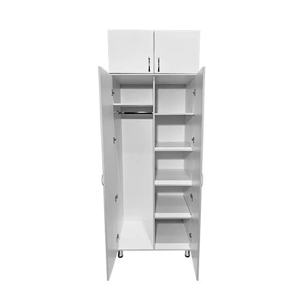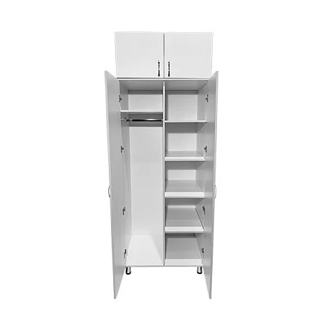 Шкаф медицинский СТР МД 104.02 + Шкаф-антресоль СТР МД 112.04. Антресоль с двумя дверками. Шкаф разбит на два вертикальных отдела, которые закрываются двумя дверками. Каждый отдел оснащен четырьмя полками, на которых можно удобно размещать одежду и личные вещи. Дополнительно в комплекте штанга для тремпелей. Шкаф выполнен из ЛДСП толщиной 16 мм. На ножках установлены регулируемые по высоте опоры. Приобретая шкаф медицинский СТР МД 104.02 с антресолью СТР МД 112.04 в интернет-магазине «МедМебель», вы экономите на покупке, так как мы установили цены от производителя. Быструю доставку по Москве обеспечивает курьерская служба. По России отправка возможна транспортными компаниями.