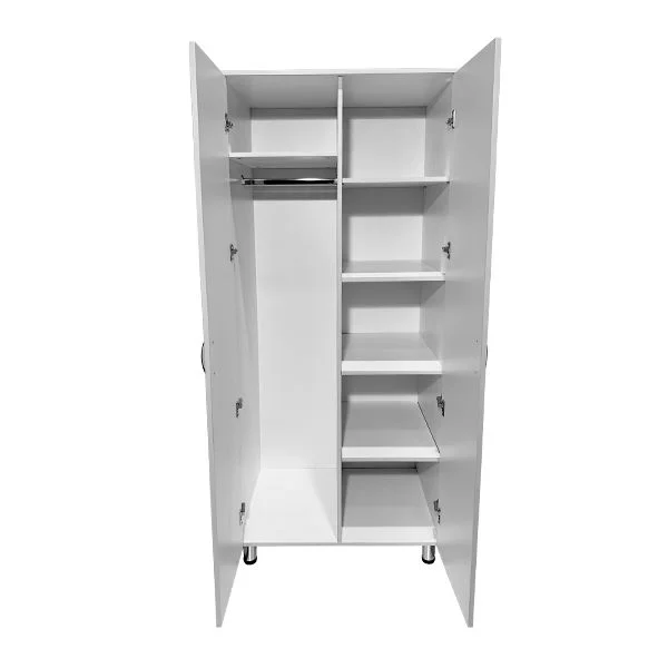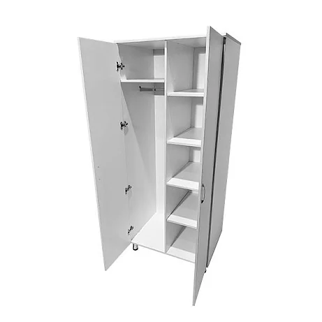 Модель СТР МД 104.02 оснащена полками, штангой для тремпелей, дверцами и регулируемыми по высоте ножками, что обеспечит удобство использования и благоприятную организацию хранения. Изготовленный из прочного ЛДСП, этот шкаф гарантирует надежность и долговечность.