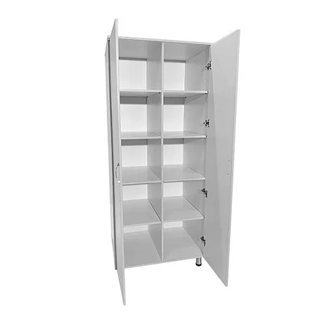 Шкаф медицинский для одежды СТР МД 104.05 внутри разбит на два вертикальных отдела, каждый из которых имеет по четыре полки. Шкаф закрывается двумя дверками. Все элементы шкафа изготовлены из ЛДСП (16 мм). Для компенсации неровностей пола на ножках предусмотрены регулируемые по высоте опоры. Лучшая цена на шкаф медицинский для одежды СТР МД 104.05 предложена в официальном интернет-магазине завода-производителя «МедМебель». Вам не нужно переплачивать посредникам, покупайте у производителя. Отправка в любой регион России транспортными компаниями. По Москве работает курьерская служба.