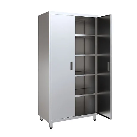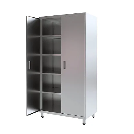 Отдельные элементы могут выполняться из оцинкованной стали, что не влияет на общую стойкость конструкции к коррозии при соблюдении регламентов санитарной обработки. Гладкие, ровные поверхности и отсутствие труднодоступных зон облегчают уход: шкаф быстрее обрабатывается, а риск накопления загрязнений в стыках и кромках существенно снижается.