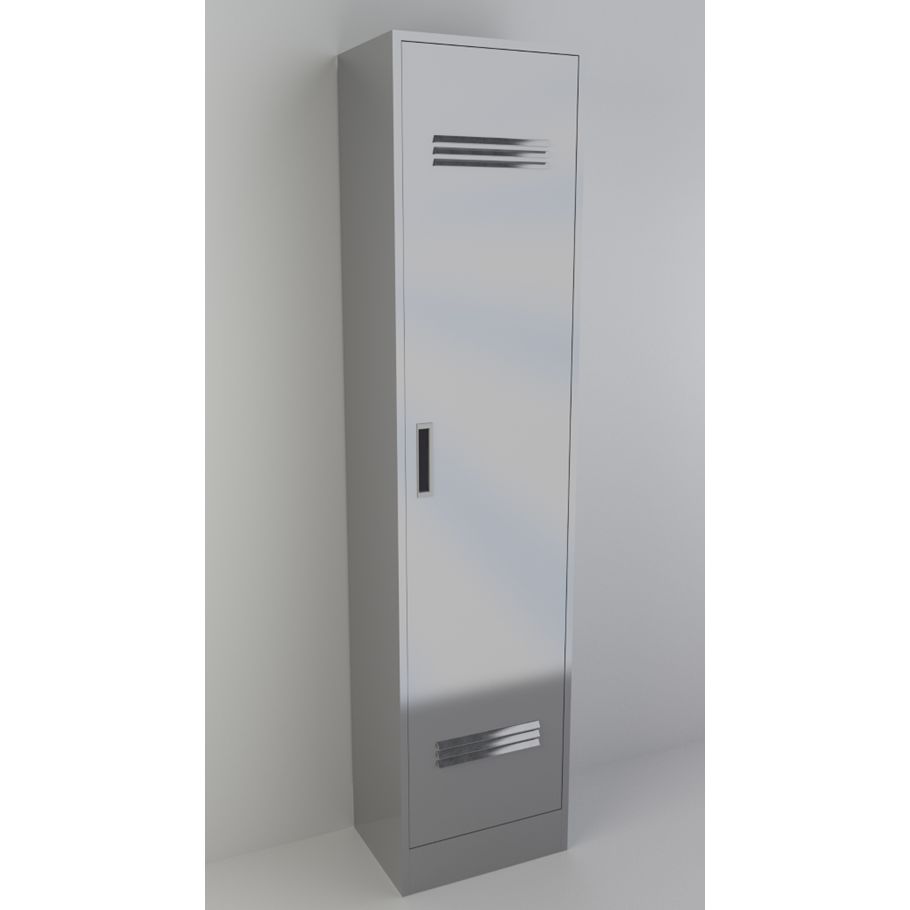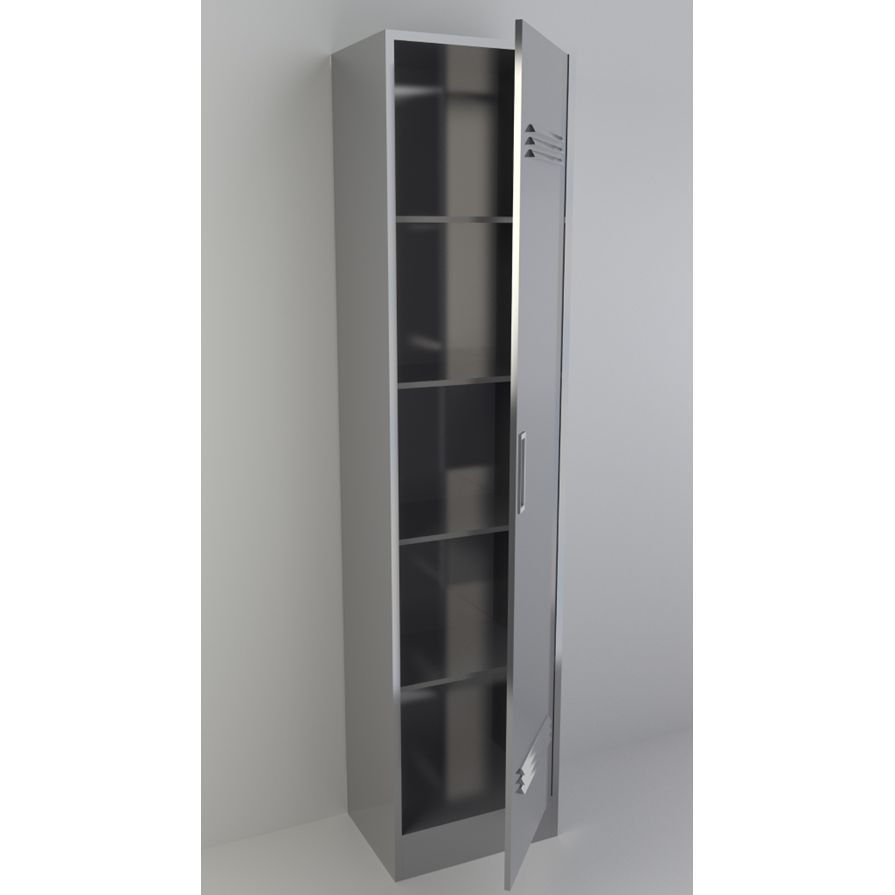 Корпус шкафа выполнен в виде прочной сварной конструкции из нержавеющей стали AISI 304 (возможно изготовление из стали AISI 430). Модель оснащена одной распашной дверью, обеспечивающей удобный доступ к содержимому при ежедневной эксплуатации. Внутри шкафа четыре удобные полки