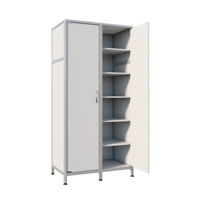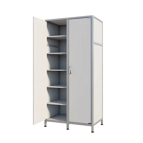 Шкаф медицинский СТР МД-ал 108.04 устанавливается в лабораториях для размещения одежды сотрудников. Шкаф разделен на два отдела. В комплектацию входят десять полок и штанга для тремпелей. Такая комплектация предусматривает два варианта использования шкафа, расширяет его функциональность и обеспечивает удобную организацию хранения. Оба отдела оборудованы дверками. Каркас из алюминия обшивается ЛДСП (8 мм). На ножках установлены опоры-регуляторы. Самая выгодная цена на шкаф медицинский СТР МД-ал 108.04 установлена интернет-магазином «МедМебель». Доставка товаров по России осуществляется посредством транспортных компаний. По Москве доставкой занимается курьер.