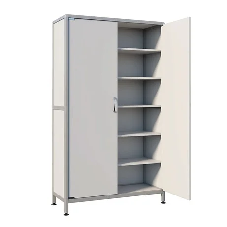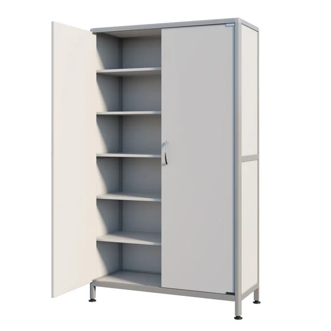 Модель СТР МД-ал 111.12 имеет удобные полки, дверцы и регулируемые по высоте ножки, обеспечивая удобство использования и легкий доступ к хранимым предметам. Каркас из алюминиевого профиля гарантирует прочность, устойчивость и долговечность конструкции. Алюминиевый профиль каркаса покрыт порошковой краской, что придает шкафу эстетичный внешний вид и обеспечивает защиту от внешних воздействий.