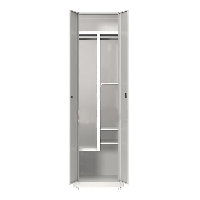 Шкаф МСК-649.01 — надежный и функциональный элемент для хранения уборочного инвентаря в медицинских учреждениях, санаториях и гостиницах. Его жесткая модульная конструкция, созданная из высококачественной листовой стали толщиной 0,8 мм, обеспечивает прочность и долговечность. Шкаф оснащен регулируемыми винтовыми опорами. Металлические двери, укомплектованные замком, обеспечивают безопасность содержимого. В комплекте предусмотрены четыре полки для удобного хранения, что делает шкаф практичным решением для организации пространства.