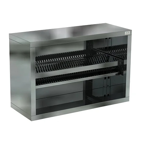 Шкаф-полка настенная для сушки посуды ПШС-90/40 широко применяется на предприятиях общепита, вешается на стену и не занимает напольное пространство. Кассета с ячейками для посуды, рассчитанная на размещение 30 тарелок, устанавливается внутри шкафа. В качестве материала для изготовления шкафа-полки используется нержавеющая сталь. Интернет-магазин МедМебель установил на шкаф-полку для сушки посуды ПШС-90/40 минимально возможную цену. Сделайте заказ прямо сейчас, и курьер быстро доставит товар по Москве. Возможно изготовление мебели из нержавеющей стали по Вашим чертежам и размерам. Для просчета возможности изготовления изделия, не представленного на сайте, и получения коммерческого предложения, просим обращаться к менеджерам компании по телефону или электронной почте.