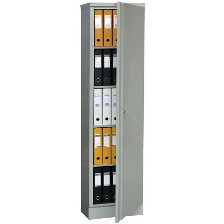 Стальной шкаф с четырьмя полками для хранения секретной и деловой документации очень удобен для размещения в кабинетах, где мало места. Он не широкий, но, тем не менее, очень вместительный, разместить в нем можно не менее 30-и папок. Пластиковые втулки и стальные ригели помогают дверям шкафа Практик АМ 1845 закрываться бесшумно. Мебель соответствует всем требованиям ГОСТ. Поставляется шкаф в разобранном виде. Сейчас такую модель шкафа выгоднее всего заказать c доставкой в магазине МедМебель, Москва.