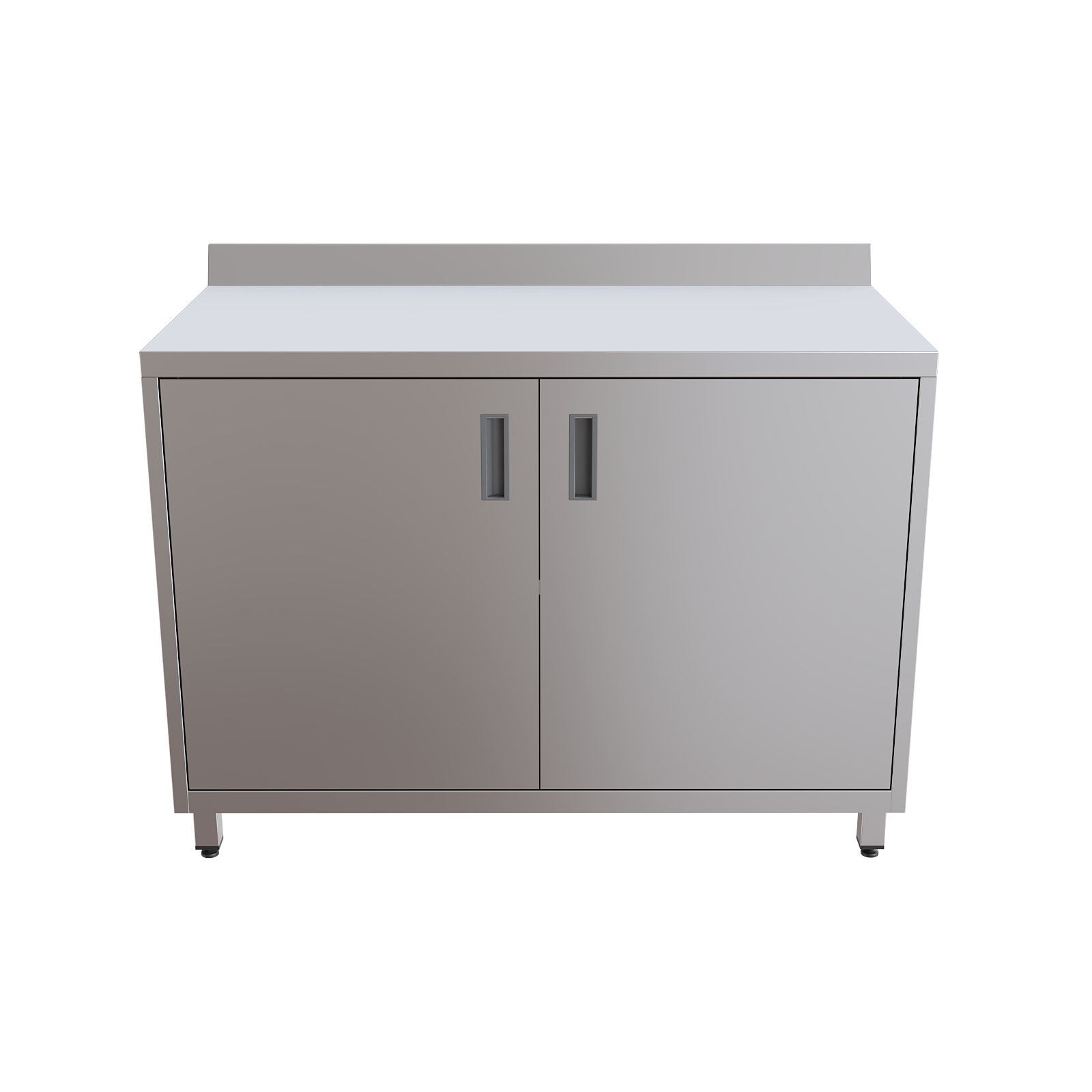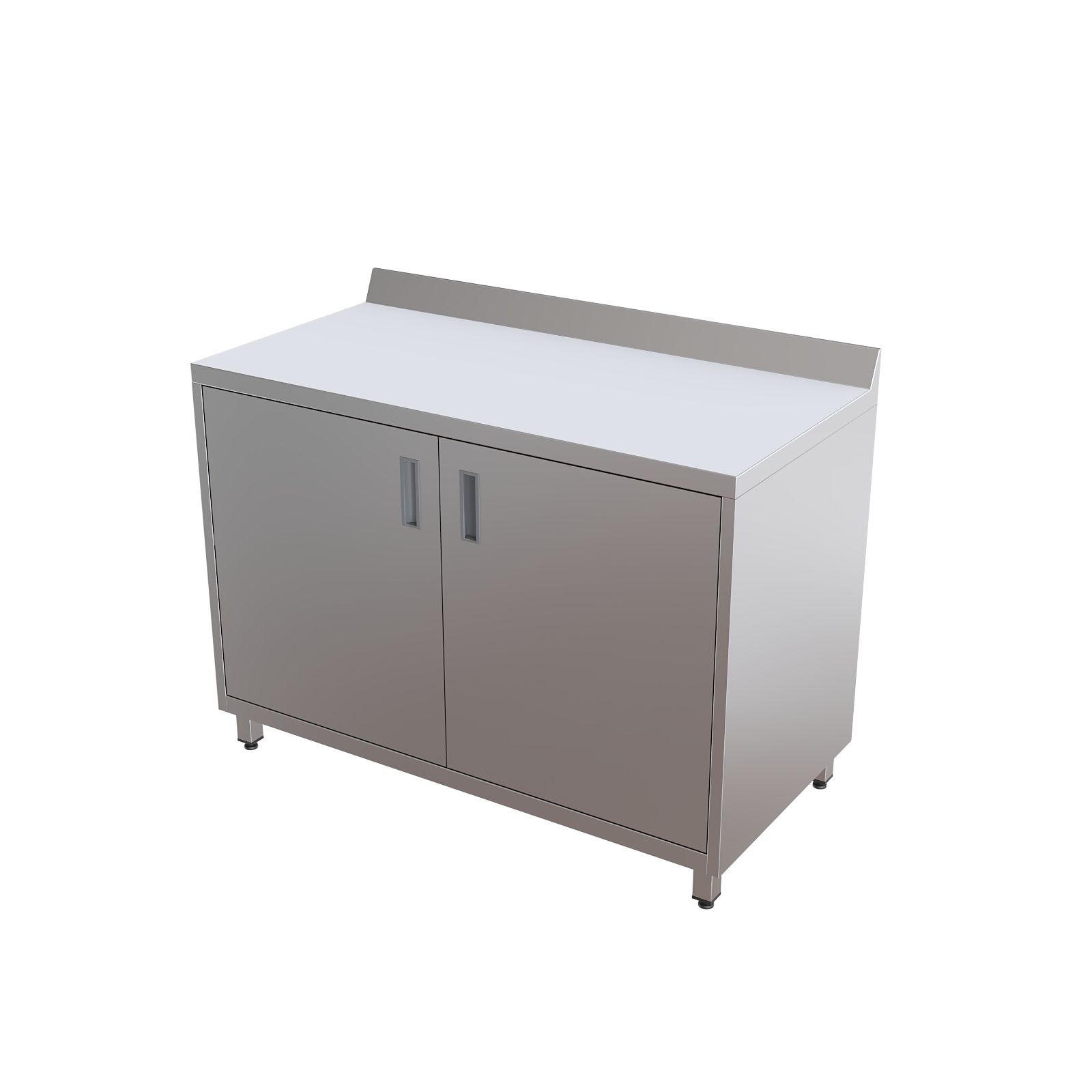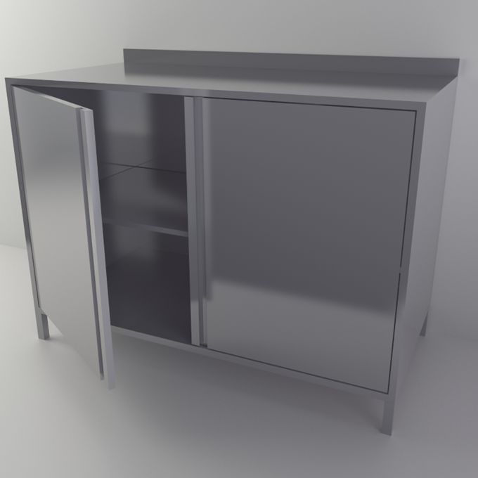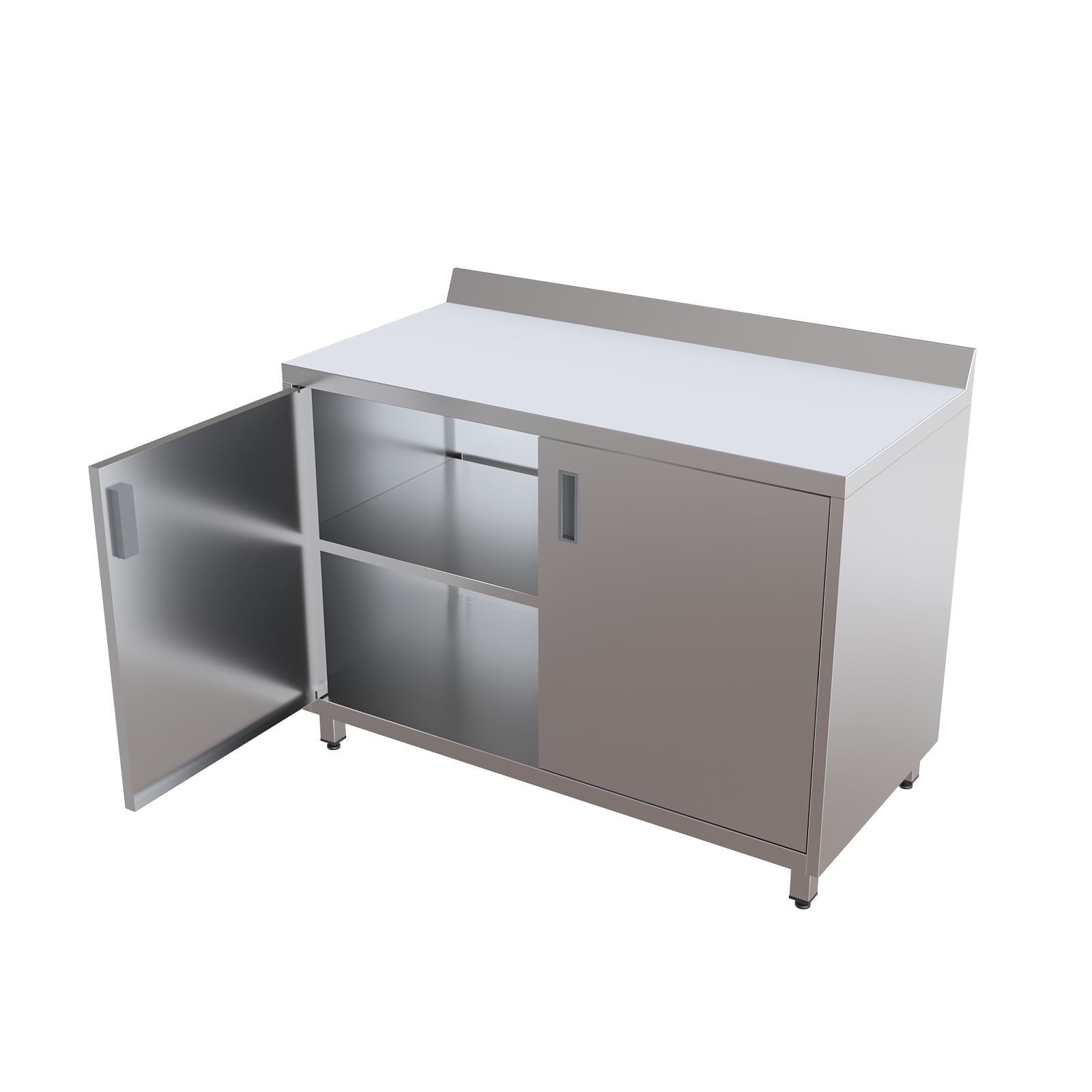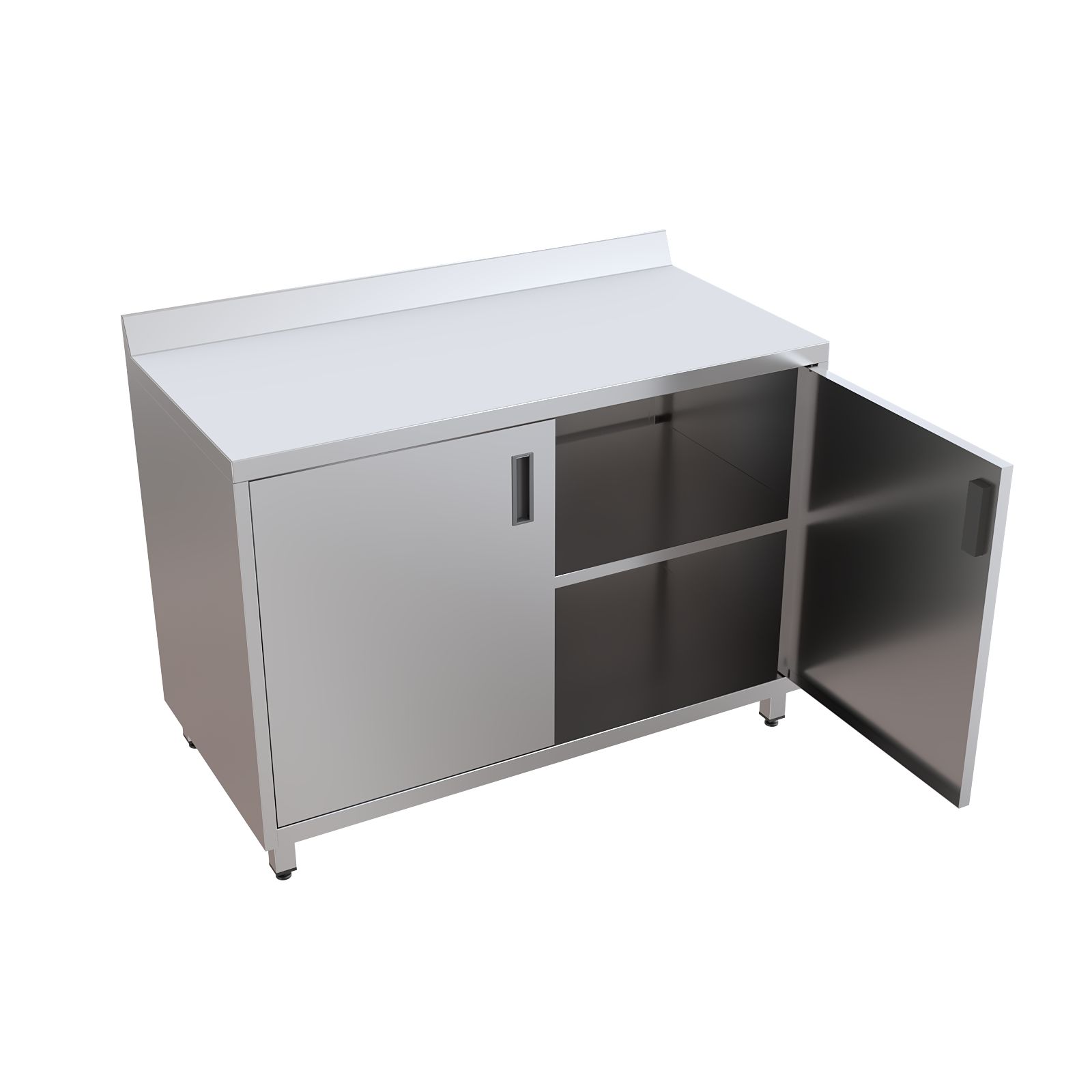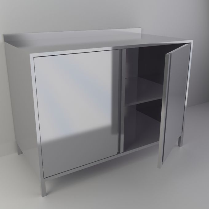 Модель оснащена удобной столешницей с бортом, двумя распашными дверцами и внутренней полкой для рациональной организации пространства. Шкаф установлен на четырех регулируемых по высоте опорах, что обеспечивает устойчивость и возможность точной подстройки под особенности помещения.
