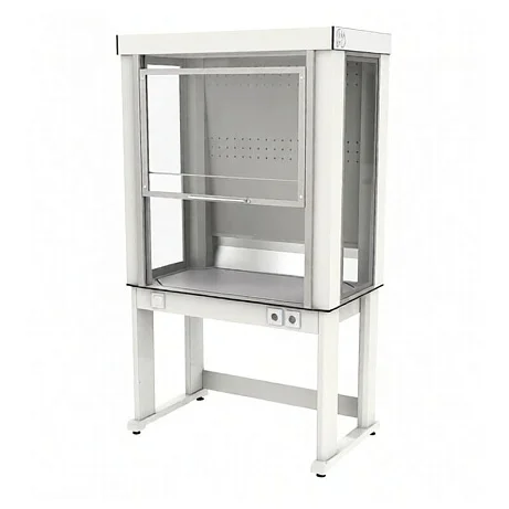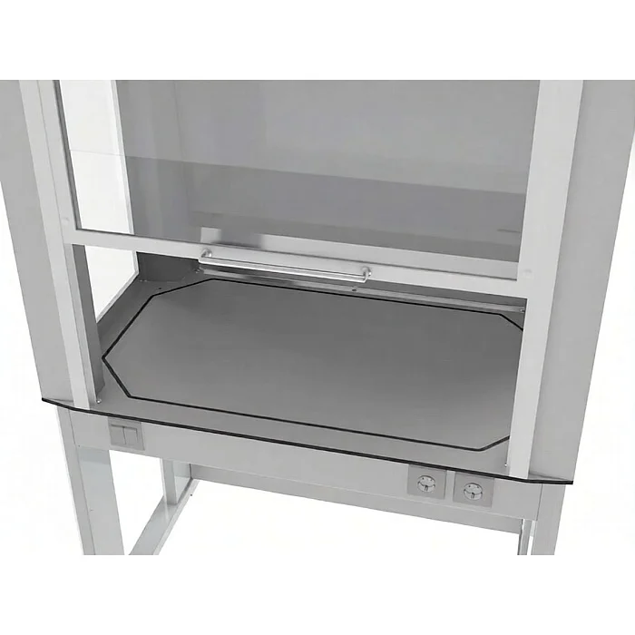 Модель рассчитана на повседневную лабораторную нагрузку: внутри удобно выполнять манипуляции, а также размещать необходимые приборы прямо в рабочей зоне, не жертвуя комфортом и логикой рабочего процесса. Практичная пластиковая столешница хорошо подходит для аккуратной работы с реагентами и облегчает поддержание чистоты.
