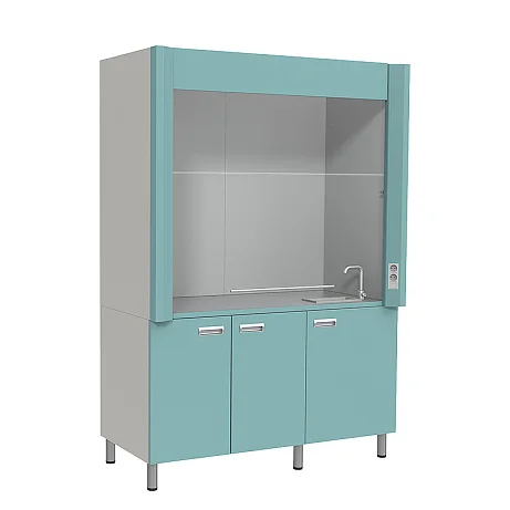 Шкаф вытяжной ШВ-03-902-МСК с подводом воды и столешницей из нержавеющей стали — идеальное решение для эффективной и безопасной работы в химических лабораториях, где требуется взаимодействие с растворителями, нефтепродуктами и токсичными химическими реактивами. Компактный и эргономичный, этот шкаф оснащен сливной раковиной из полипропилена размером 300х300х150 мм и краном для водоснабжения, что создает удобные условия для проведения экспериментальных процессов.