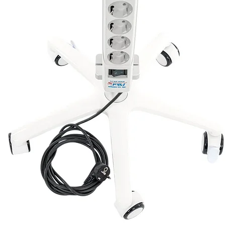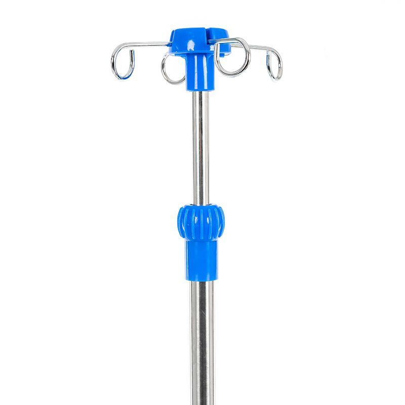 Основание пятилучевое — это классическая геометрия для устойчивости, когда стойку приходится перемещать между койками или разворачивать в ограниченном пространстве. Двойные колёса диаметром 50 мм обеспечивают плавный ход по типовым напольным покрытиям.