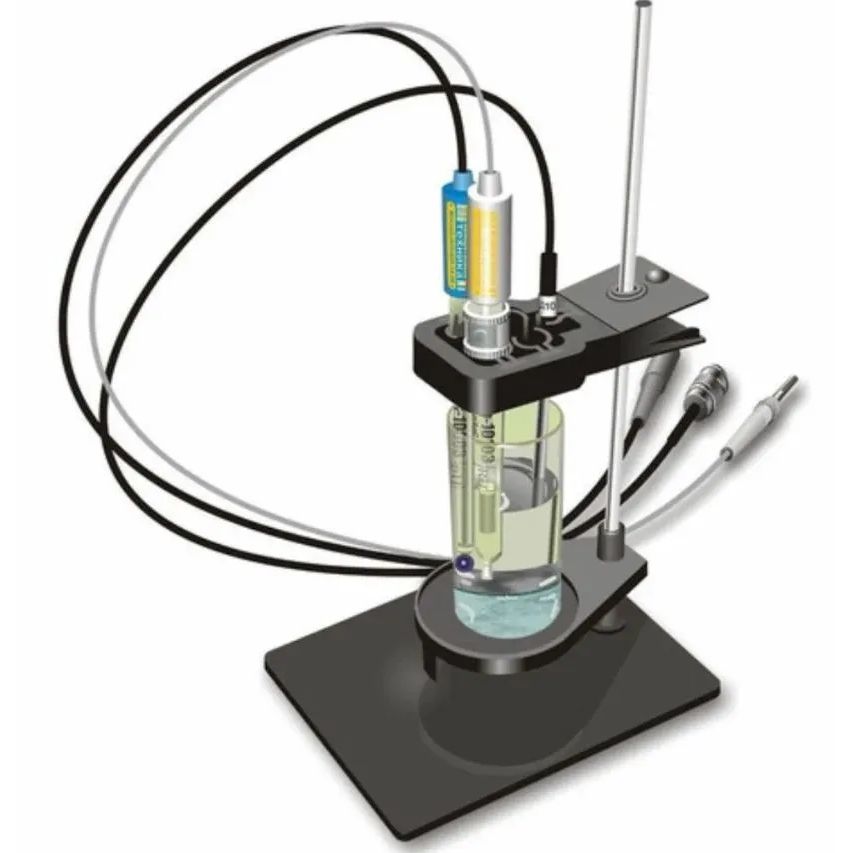 Сменные держатели делают штатив универсальным: вы можете закреплять разные по назначению компоненты в одном рабочем узле — измерительный электрод, электрод сравнения, термодатчик — и выстраивать аккуратную, повторяемую схему измерения.