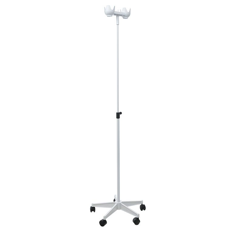 - Стойка выполнена из стальной трубы Ø16*1,5 мм, Ø25*1,5 мм и окрашена порошковой полиэфирной краской. Флаконодержатель выполнен из пластика белого цвета. Лучи основания выполнены из полиамида. Основание сборно-разборное