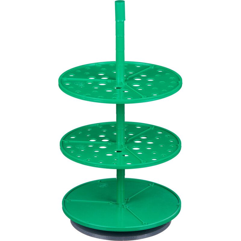 Штатив выполнен прочным и при этом лёгким. Конструкцией предусмотрена возможность изменять высоту верхних дисков и вращать их — полезная мелочь, которая в реальной работе ощущается сразу. Поворот дисков помогает быстро подвести нужный сектор к оператору, а регулировка по высоте позволяет подстроиться под длину пипеток и привычки персонала.