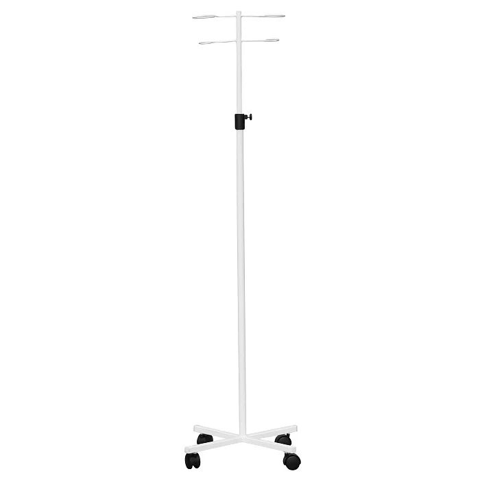 Штатив П01 предназначен для проведения инфузионной терапии и капельных вливаний. Два держателя позволяют организовать рабочее место аккуратно и безопасно: можно использовать разные по размеру ёмкости или разделять потоки по назначению. Колёсная база помогает маневрировать в тесных палатах, а широкий разлёт опор снижает риск опрокидывания при перемещении.
