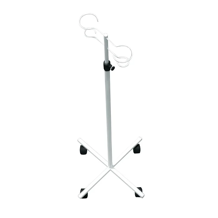 Медицинский штатив П01 предназначен для проведения внутривенных вливаний и удобного размещения ёмкостей с медицинскими жидкостями и лекарственными растворами во время процедур. Подходит для оснащения медицинских, лечебных и лечебно‑профилактических учреждений. Модель оснащена двумя держателями, регулируется по высоте в диапазоне 1300–2300 мм и имеет устойчивое основание с разлётом опор 500×500 мм.