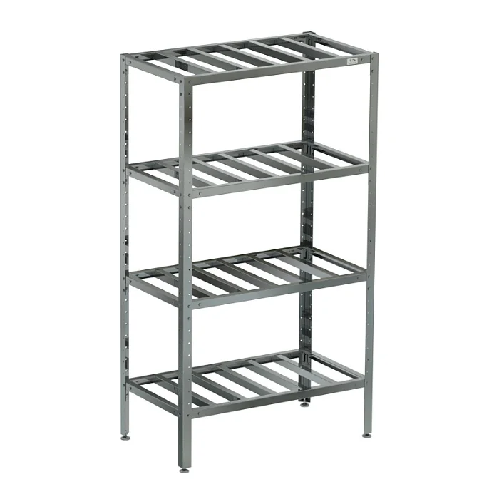 Читать полностью >Стеллаж решетчатый СКР-90/40. Стеллаж выполнен из нержавеющей стали. Он содержит четыре полки, расположенные каскадным образом. Разработанная на предприятии система крепления полок, обеспечивает жёсткость конструкции стеллажа. Каркас стеллажа выполненных в виде уголка 40х40 мм из оцинкованной стали. Ножки стеллажа снабжены регуляторами высоты, позволяющими устранять возможные неровности пола. Опоры регуляторов высоты не подвержены коррозии. Стеллаж имеет разборную конструкцию, что является большим плюсом при транспортировке и хранении. Стеллаж предназначен для размещения, хранения и сушки в естественных условиях различных предметов.