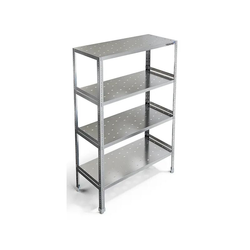 Простой, надёжный рабочий инструмент для кухни — этот стеллаж из нержавейки AISI304 сделан так, чтобы служить годами. Четыре стойки толщиной 2 мм держат четыре перфорированные полки (0,8 мм), которые устанавливаются на нужной высоте. Ножки с регуляторами позволяют выровнять стеллаж на неровном полу, а разборная конструкция делает транспортировку и сборку максимально удобными.