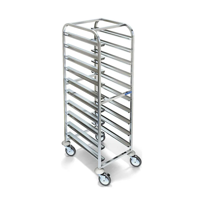 Стеллаж-шпилька СТС-220/604У — простое и надёжное решение для кухни: сварен из пищевой нержавеющей стали AISI 304 и вмещает стандартные противни. На обрезиненных поворотных колёсах Ø125 мм он легко маневрирует и надёжно фиксируется благодаря двум тормозам, а пластиковый отбойник защищает стены и технику от ударов. Подойдёт для хранения и транспортировки продуктов и противней — практичный и долговечный помощник для профессиональной кухни.