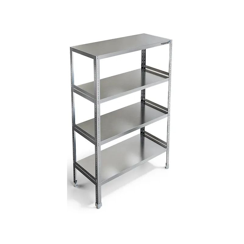 Практичный и надёжный стеллаж для кухонных цехов: хранение сухих продуктов и инвентаря без лишних забот. Конструкция разбирается на четыре стойки и четыре полки — удобно транспортировать. Стойки каркаса — из нержавеющей стали 2 мм, полки — сплошные AISI304, которые можно устанавливать на нужной высоте.